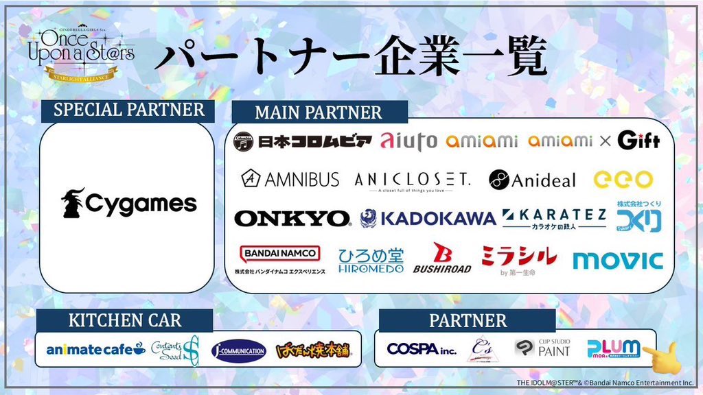 アイドルマスターシンデレラガールズが11月末に開催するxRライブストリーミングなどを含む4公演の音楽イベント「CINDERELLA GIRLS fes. Once Upon a St@rs」の協賛社となりました。